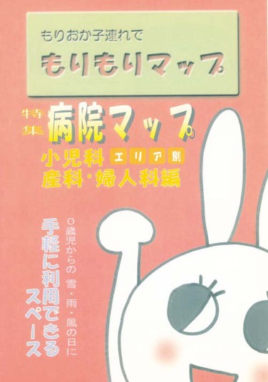 もりおか子連れでもりもりマップ 病院マップ(小児科/産科・婦人科編) 編集/ママーズ B5判48頁/H16.04.01発行/¥423(税込) 転勤などで盛岡に移り住んできた主婦達が「盛岡での子育てを楽しいものにしたい!」という思いで、自らの足で情報を集め、原稿を書き、版下から作成した「子連れママ」のための情報誌。今回お届けするのは、病院(小児科・産婦人科)編です。 |