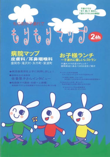 もりおか子連れでもりもりマップ 2th 病院マップ(皮膚科/耳鼻咽喉科編) 編集/ママーズ B5判40頁/H17.01.01発行/¥443(税込) 前回の病院編に続く第二弾は、皮膚科・耳鼻咽喉科と子連れにやさしいレストラン!盛岡市在住の漫画家「佐香厚子さん」のインタビューも掲載。 |