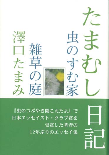 たまむし日記 虫のすむ家 雑草の庭 著者/澤口たまみ 四六判218頁・並製本/H.19.04.08発行/¥1,296(税込) 【第11回日本自費出版文化賞第一次選考突破作品】日本エッセイストクラブ賞を受賞した澤口たまみさんの12年ぶりのエッセイ集。近年は絵本作家として活躍している著者の人気ブログ「たまむし日記」から選りすぐった心温まるメッセージ。親子が見つめた身近な生命の営みに、感動と共感の声が広がっています。著者の祖母は生前、口癖のように「子供が育つ家には、庭が必要だ。家と庭があって、はじめて家庭ができる」と話していたという。ユーモアあふれる語り口、読みやすい文章を通して読み終えた後は温かな気持ちにさせられる。 |