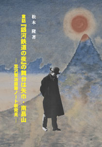 童話『銀河鉄道の夜』の舞台は矢巾・南昌山 -宮沢賢治直筆ノート新発見- 著者/松本隆 A5判376頁・上製本/H22.11.23発行/¥2,057(税込) 宮沢賢治の代表作「銀河鉄道の夜」の舞台は岩手の矢巾町・南昌山だった!! 賢治の二つ年上の先輩、藤原健次郎を兄のように慕い、二人で南昌山に登ったり水晶を拾ったりした体験や、その健次郎が腸チフスで突然死んでしまった悲しみが「銀河鉄道の夜」を発想させたという新考察を発表。なぜ、南昌山といえるのか? 説得力のある9つの証明と4つの考察を説明する。また、宮沢賢治の親友・藤原健次郎の生家から新発見されたノートは、賢治直筆のものだった。「宮沢賢治直筆ノート」の復刻版〈カラー64頁〉を巻末に収録、ノートの意味するものを詳細に解説。 矢巾町をキーワードに、賢治と藤原健次郎、賢治と藤原嘉藤治、賢治と柳原昌悦の関係を詳細に解明。 |
