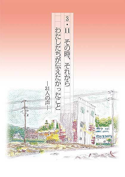 3・11 その時、それから わたしたちが伝えたかったこと -31人の声- 編著者/柳希嘉子・山内繁/A5判190頁/H23.11.10発行/¥1,543(税込) 【第15回日本自費出版文化賞第一次選考突破作品】主義や思想に関係なく、「気仙沼」と「絆、繋がり」をキーワードに東日本大震災のその時、「私」はどこにいて、なにをし、そして何を考えたのか。それからどんな行動をし、何を訴え、どのような考えを持つに至ったのか、それぞれの想いを記録し伝えていくことが、この震災に遭遇し生き残った人の責務だと思ったので、私も、友人に寄稿を頼み、原稿の文言の確認など、編集の一部を手伝いました。 既に、様々なところから、震災の体験談集や写真集・記録集などが刊行されています。もっと早くとの思いはありましたが、寄せられた様々な体験談や意見は一つ一つ皆貴重な珠玉です。これからの復旧・復興に少しでもお役にたてばと念ずるものです。(編著者山内繁氏あとがきより) |