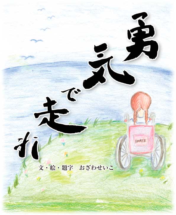 絵本 勇気で走れ 文・絵/おざわせいこ AB判36頁・並製本/H24.8.24発行/¥1,646(税込) 死とは? 生命とは? 少女は問いかける。…東日本大震災で両親を失い、車椅子歩行になった少女が悲しみの淵から立ち上がり希望に生きる物語。岩手の主婦である作者が、脳梗塞で手足の不自由な中、リハビリ中に書き描いた創作童話です。 |
