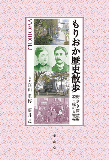 もりおか歴史散歩 街歩き探訪編 続・縁の人物編 著者/真山重博・藤井茂 四六判196頁・並製本/H27.5.15発行/¥1,080(税込) 情報誌「アップル」に掲載された「MORIOKA歴史散歩」を一冊にまとめたシリーズ第四弾。平成24年4月号から平成27年3月号まで36回の連載「みちくさ編」(真山重博著)、「先人を支えた妻たち」(藤井茂著)、「よもやま話編」(真山重博著)、「縁の教育者たち」(藤井茂著)を再編集した。 |