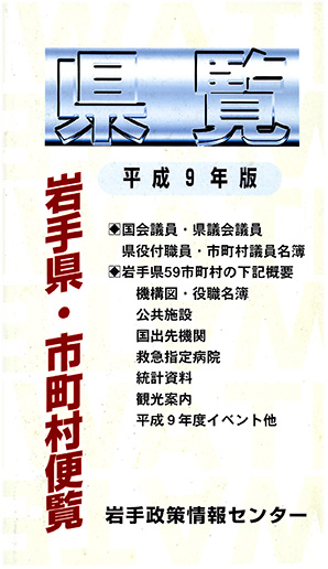 県覧 平成9年版 岩手県・市町村便覧 編集/岩手政策情報センター 新書判400頁・並製本/H9.6.1発行/¥1,620(税込) |