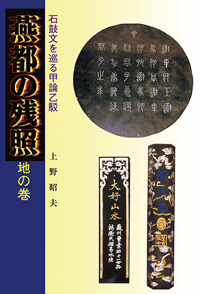 燕都の残照 地の巻 石鼓文を巡る甲論乙駁 著者/上野昭夫 A5判242頁・並製本/H10.11.25発行/¥1,728(税込) 「天の巻」に続く第二弾。文字の原点と言われる石鼓文の歴史と謎に迫る。終戦の年昭和20年。著者は中国北京にあって中国一の硯学高老師から日本と中国を対比した歴史についての薫陶を受ける。 中国の大篆文字、甲骨文字、金石文字、小篆文字、篆書、隷書、楷書、行書、草書への流れ、日本の神代文字、楷書流入、章草流入、行書、草書、平仮名の流れを理路整然と解読する。第五章からは文房四宝講義に入り、墨の由来から格に至るまで詳細に説く。 |