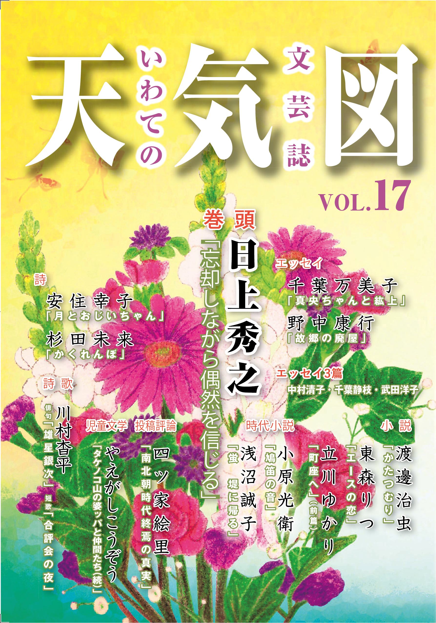| 天気図 17号 編集/天気図事務局 A5判166頁・並製本/R1.05.21発行/¥787+(税) 巻頭特別寄稿は日上秀之。執筆陣は渡邊治虫、武田洋子、浅沼誠子、野中康行、はら・まもる、安住幸子、立川ゆかり、やえがしこうぞう、東森りつ、千葉万美子、中村清子、千葉静枝、川村杳平、小原光衛、四ツ家絵里、杉田未来(掲載順敬称略)。 |