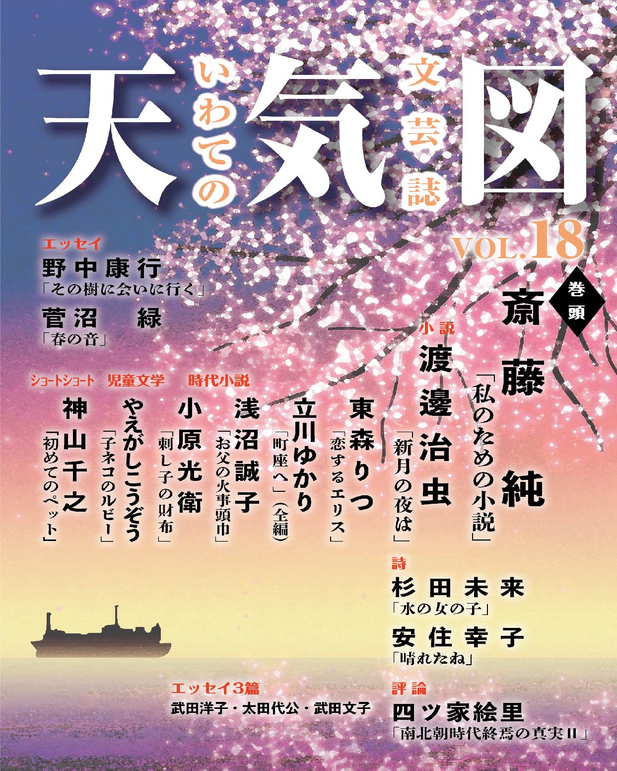 | 天気図 18号 編集/天気図事務局 A5判188頁・並製本/R2.05.12発行/¥800+(税) 巻頭特別寄稿は斎藤純。執筆陣は渡邊治虫、太田代公、武田洋子、浅沼誠子、野中康行、安住幸子、立川ゆかり、やえがしこうぞう、東森りつ、神山千之、管沼緑、杉田未来、四ツ家絵里、武田文子(掲載順敬称略)。 |